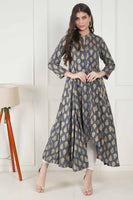 Sitara Grey Foil Printed Asymmetric Kurta