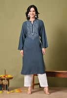 Midnight Bloom Embroidered Rayon Kurta