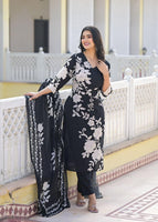 Midnight Bloom Black & White Cotton Suit Set